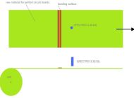 La matière première de la carte de circuit imprimé est normalement placée sur une bobine sous la forme d'une courroie "sans fin" et n'importe où sur la courroie il y a une surface de liaison qui doit être détectée. Le SPECTRO-3-30-DIL fournit des résultats appropriés pour la détection de la surface de collage. En raison du fait que la couleur de la matière première change d'une bobine à l'autre, il est nécessaire d'utiliser le MODE D'APPRENTISSAGE EXTERNE DYN1. Après la sélection d'une tolérance adéquate pour la couleur et l'intensité, le système fonctionne parfaitement.