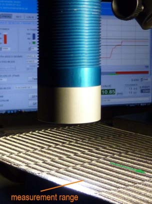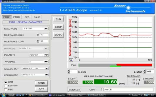 L-LAS-RL-20-W Capteur réflexe à ligne CCD (2048 pixels - 600Hz) Le capteur situé à 60mm de distance, concentre son contrôle sur une zone de 20x0,2mm